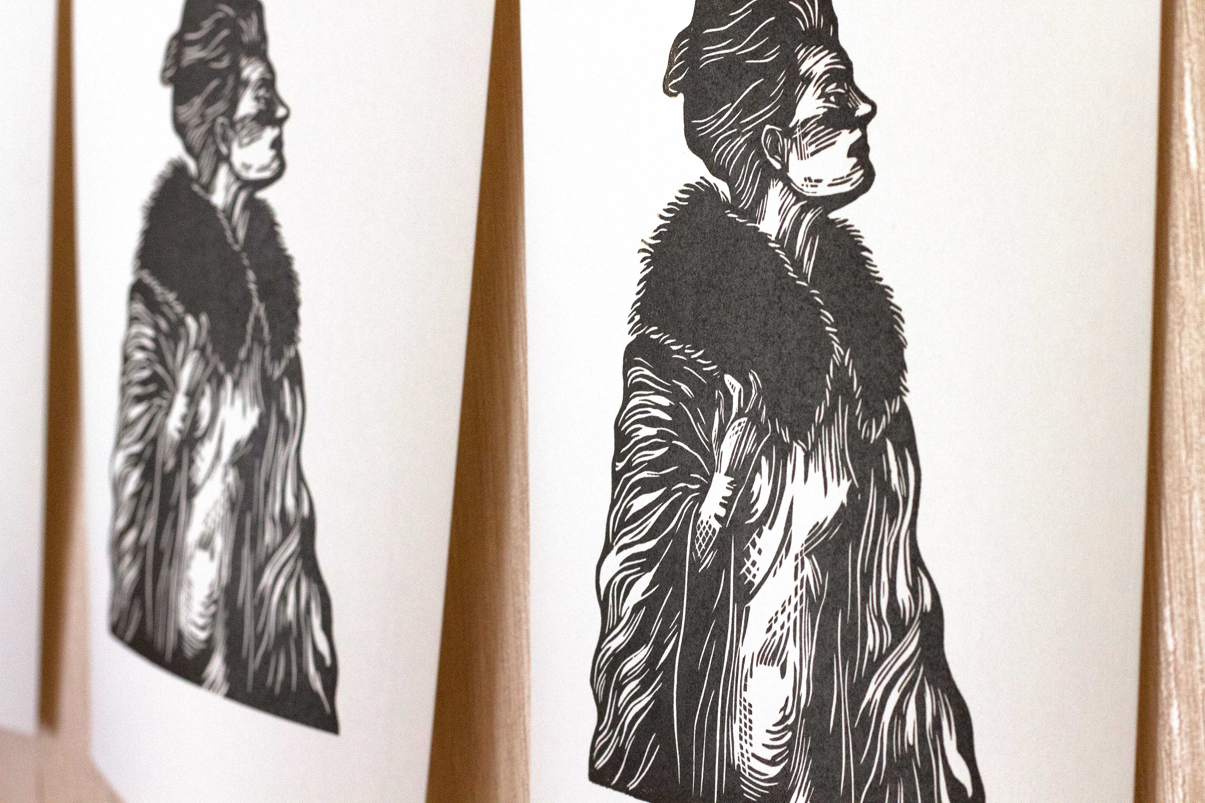 Ça faisait quelques années déjà que je voulais faire une illustration sur la Vénus à la fourrure. J'avais lu le roman en 2013 et j'avais beaucoup aimé (la chanson de Velvet underground aussi). Pour une fois, j'ai laissé la place à de larges aplats non gravés. C'est plus facile à graver ainsi, en revanche l'encrage demande beaucoup d'encre (et le bois exige plus d'encre que le lino).